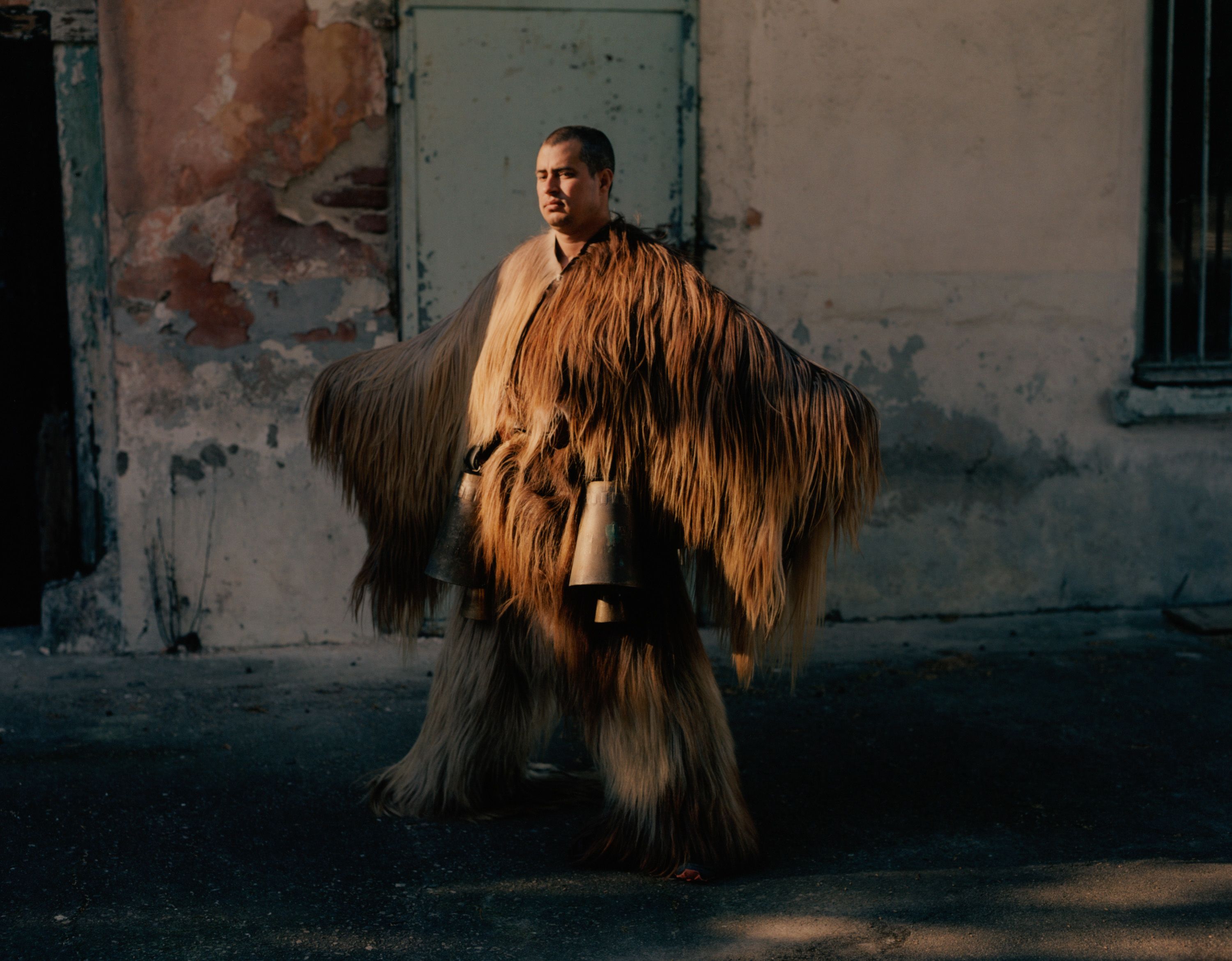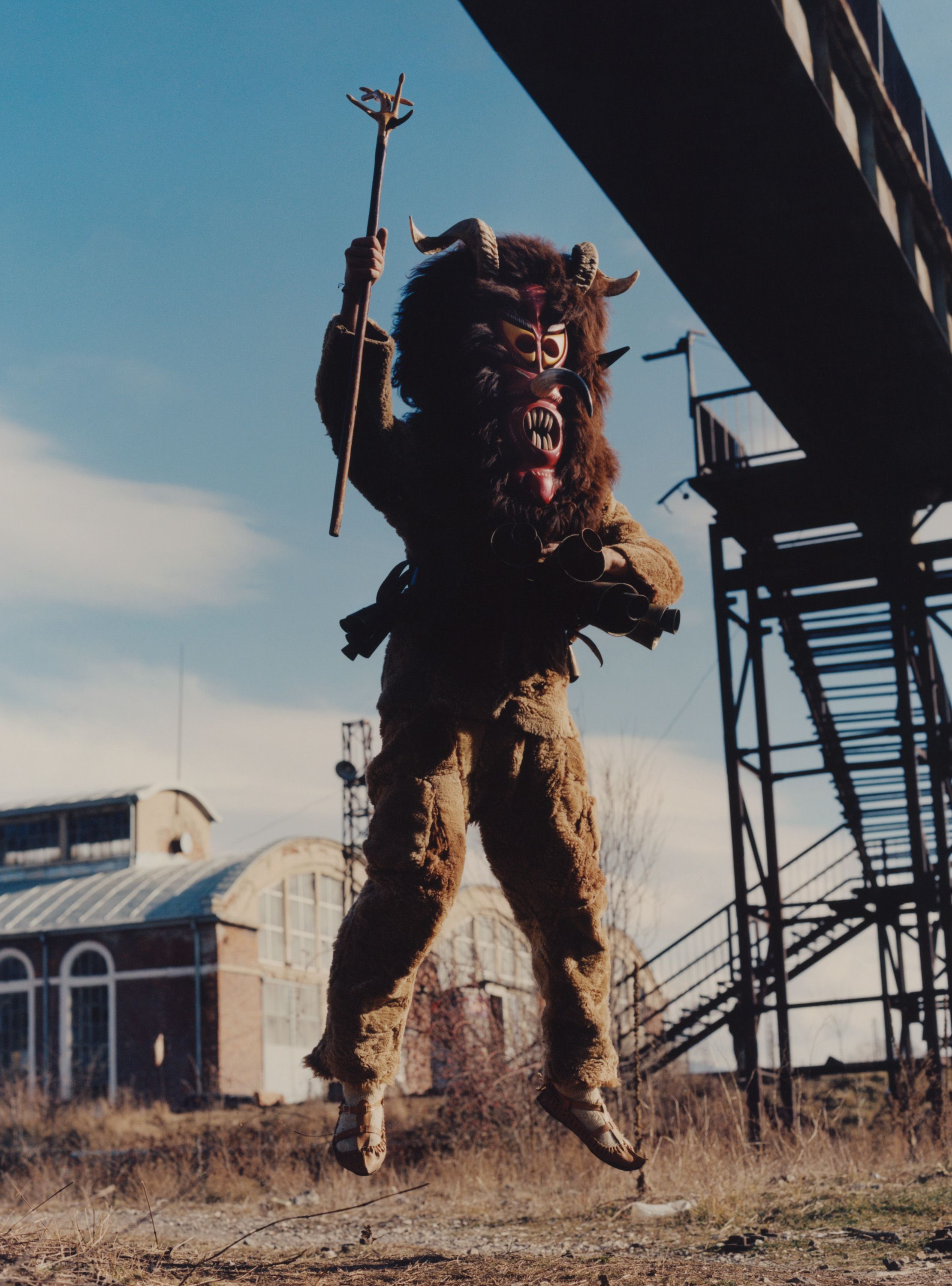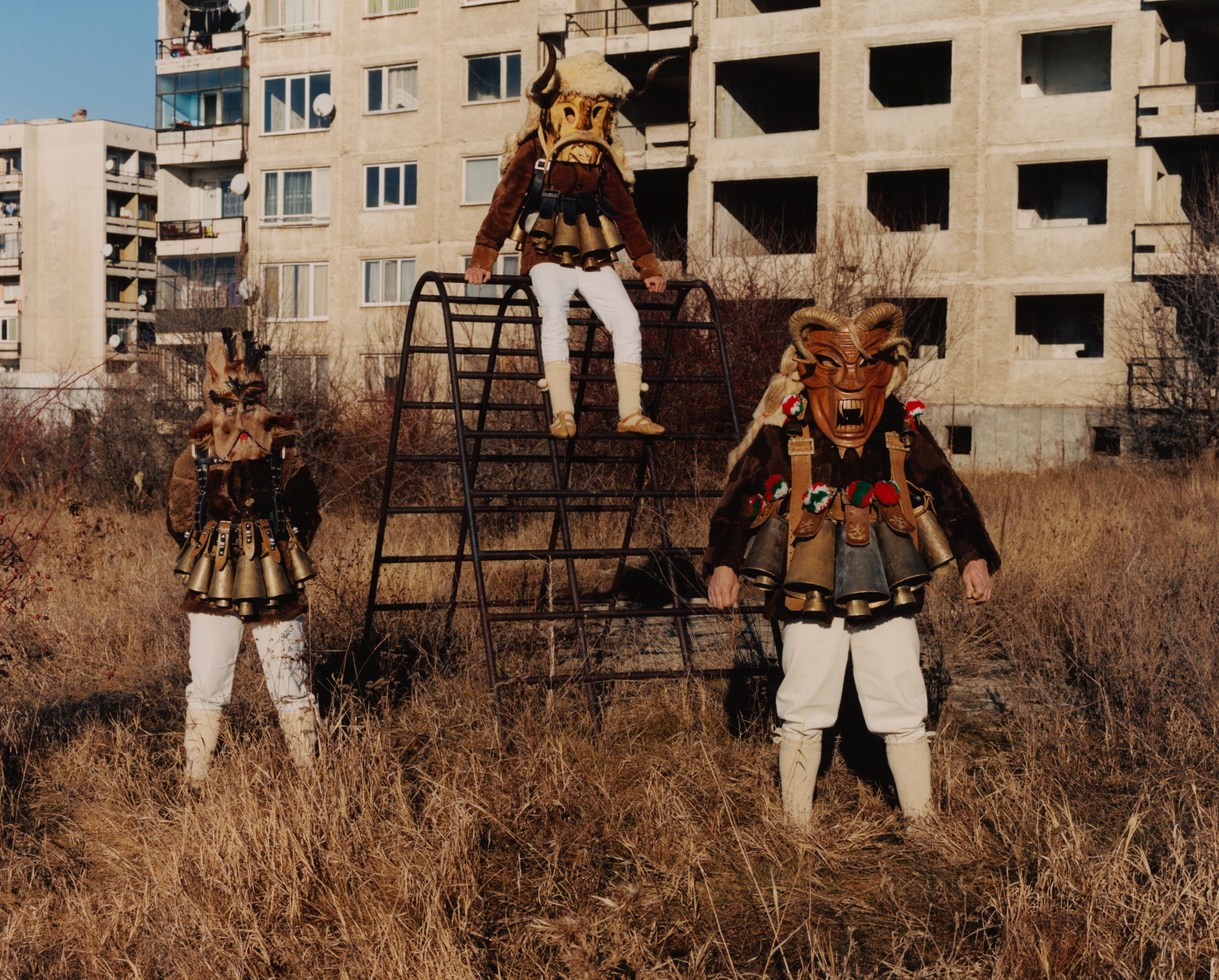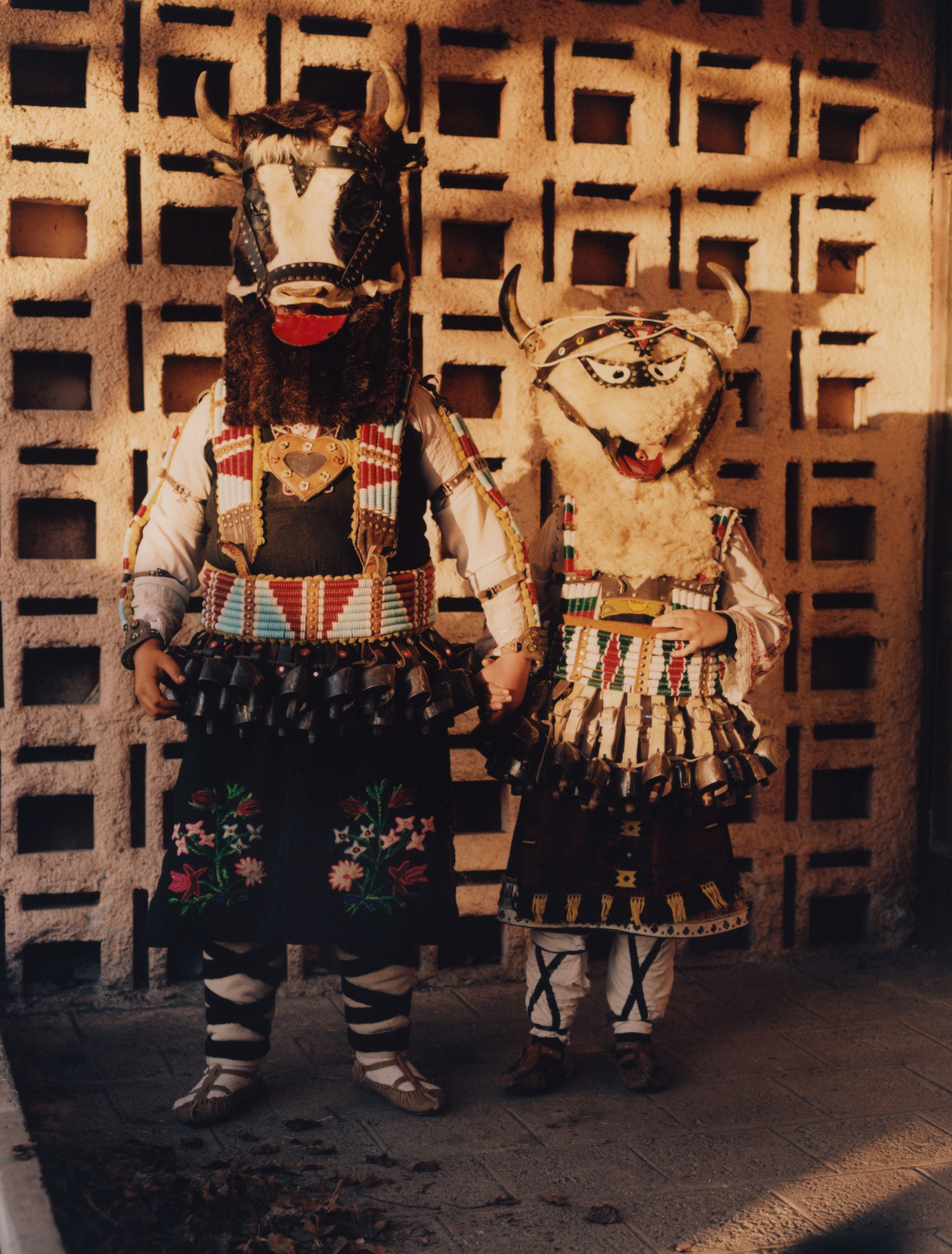 Enchanted by these elaborate costumes, photographer Theo Cottle travelled to Bulgaria, only to find that the main festival had been cancelled due to drought. Undaunted, he visited practitioners, called kukeri, at their homes, and found they were proud to share their unique tradition with him, getting their costumes out of storage and donning them for a series of intimate, joyous portraits.”