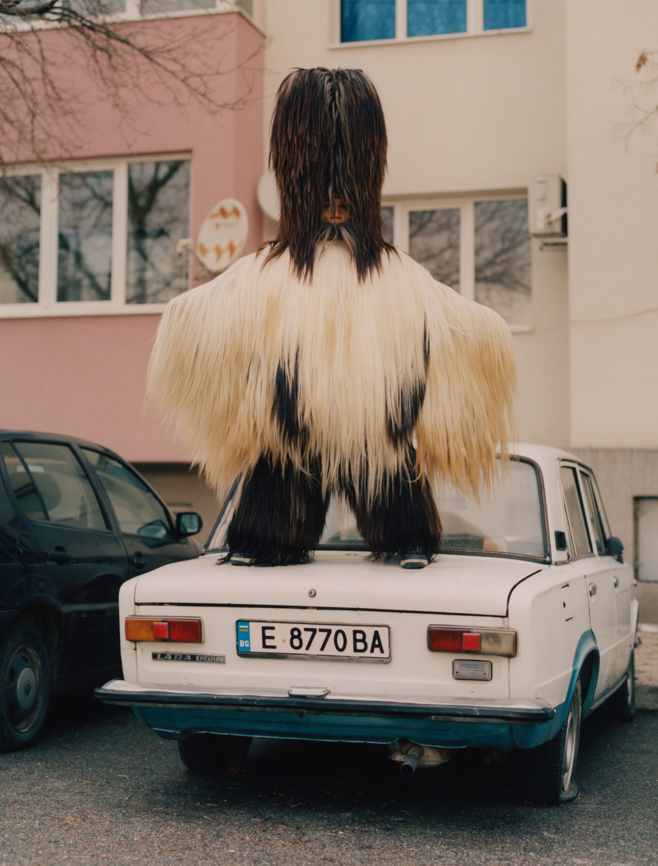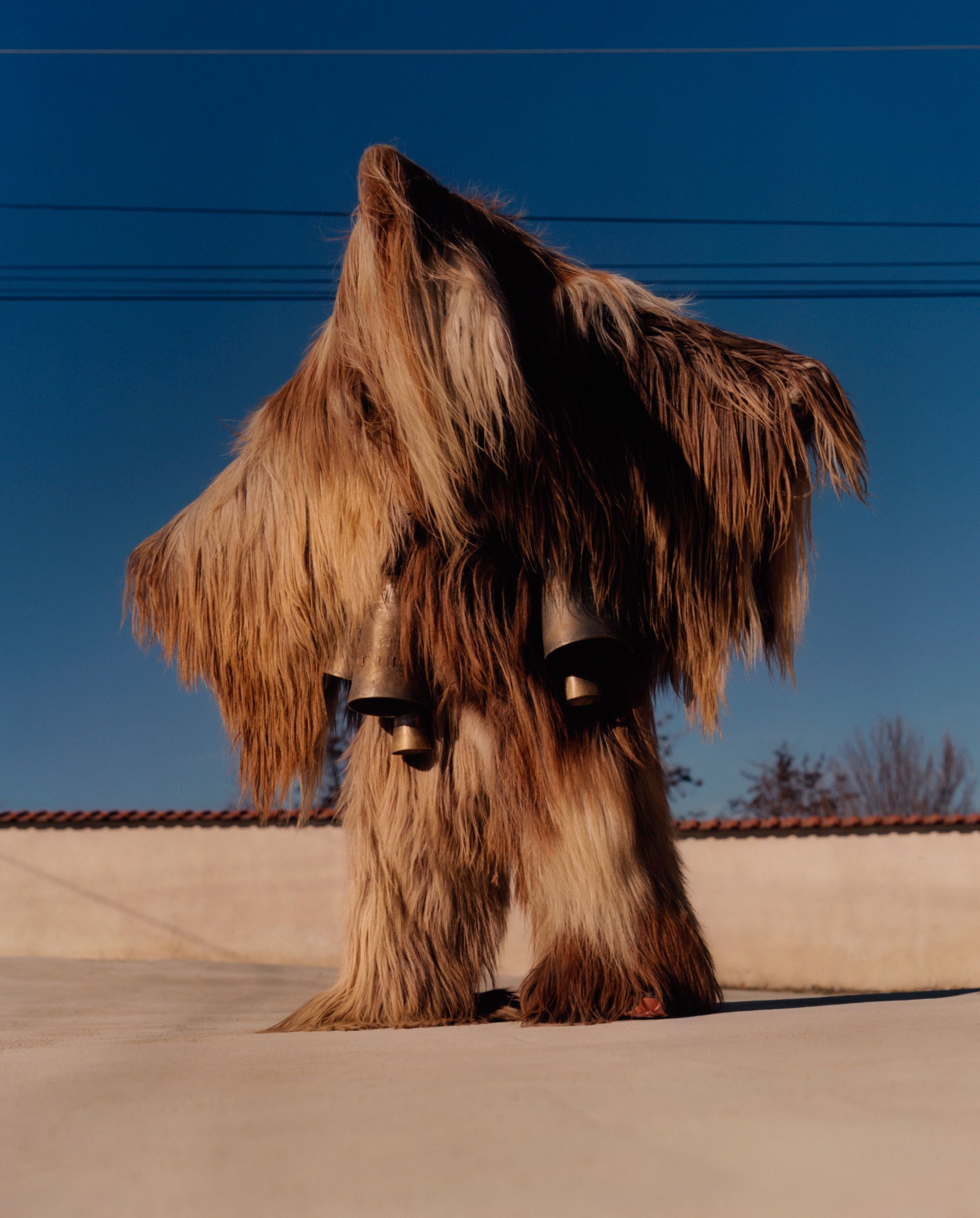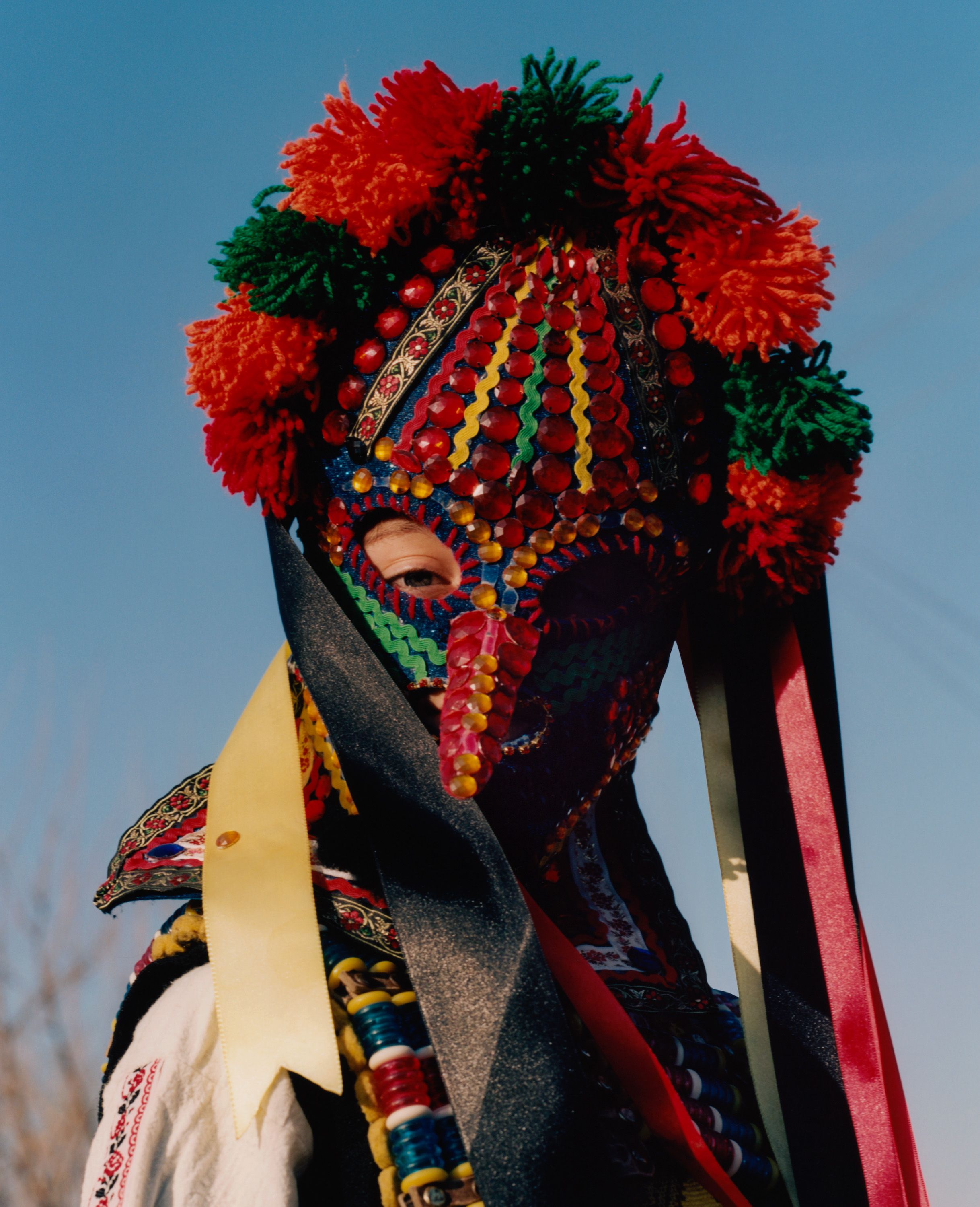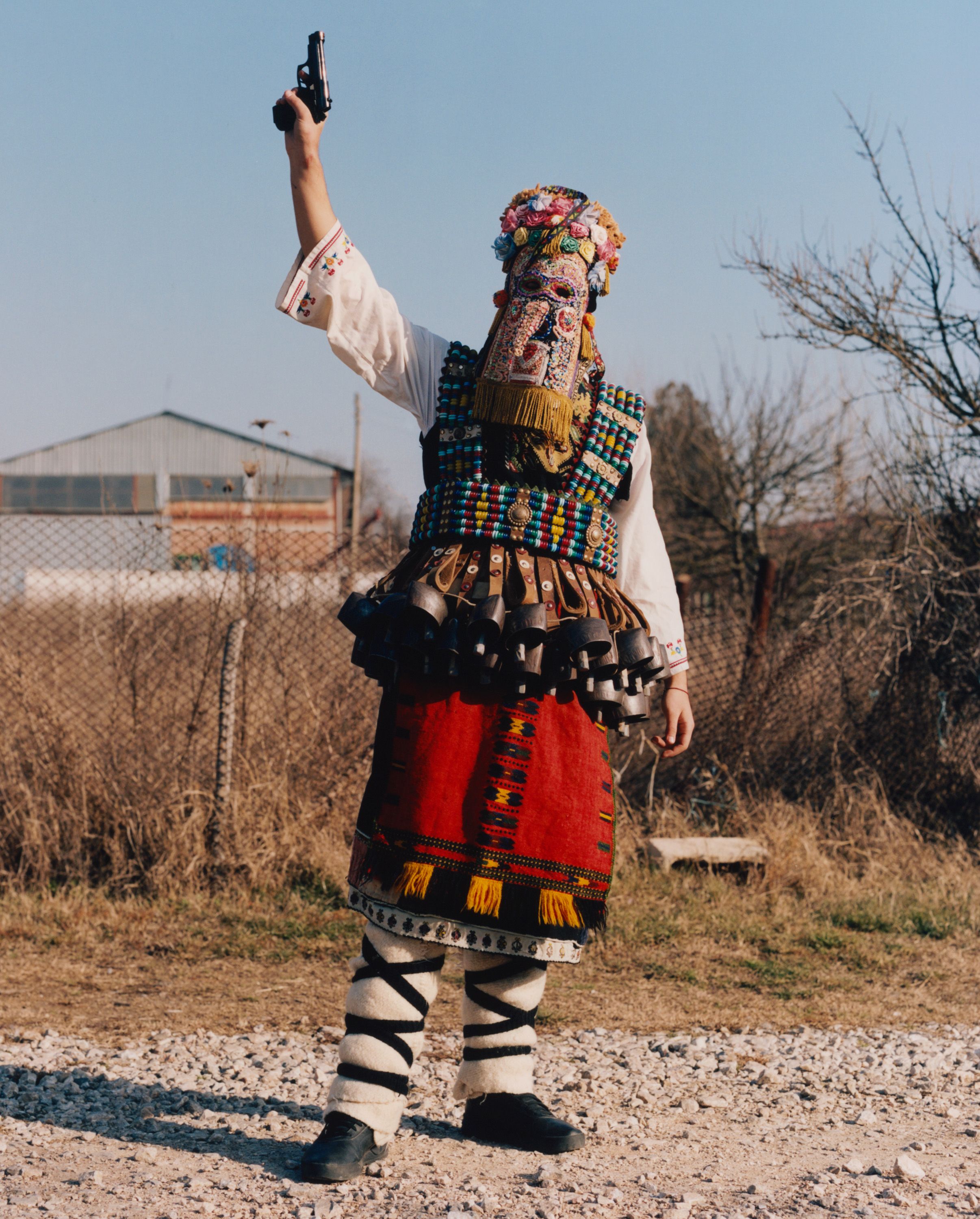 Enchanted by these elaborate costumes, photographer Theo Cottle travelled to Bulgaria, only to find that the main festival had been cancelled due to drought. Undaunted, he visited practitioners, called kukeri, at their homes, and found they were proud to share their unique tradition with him, getting their costumes out of storage and donning them for a series of intimate, joyous portraits.”
