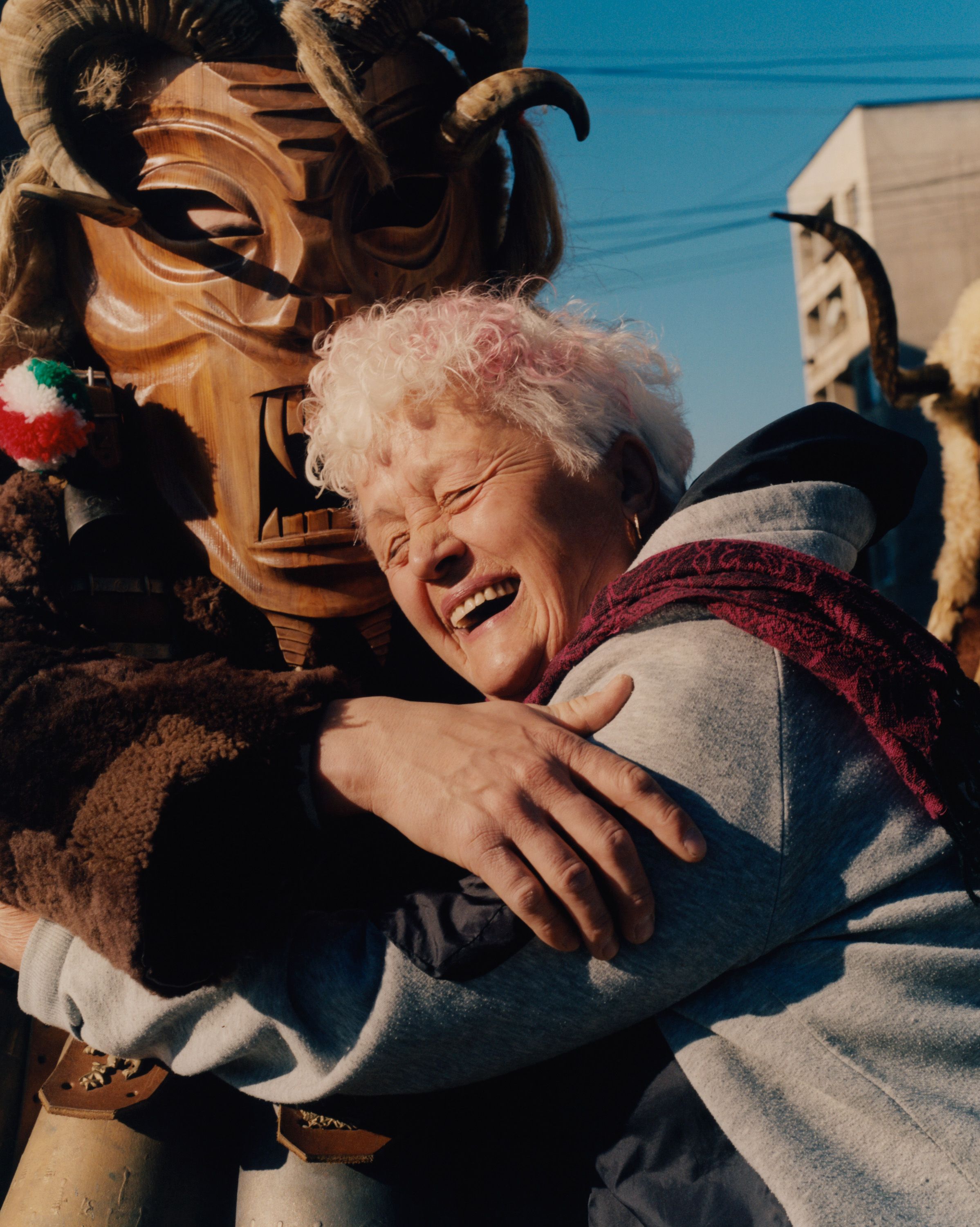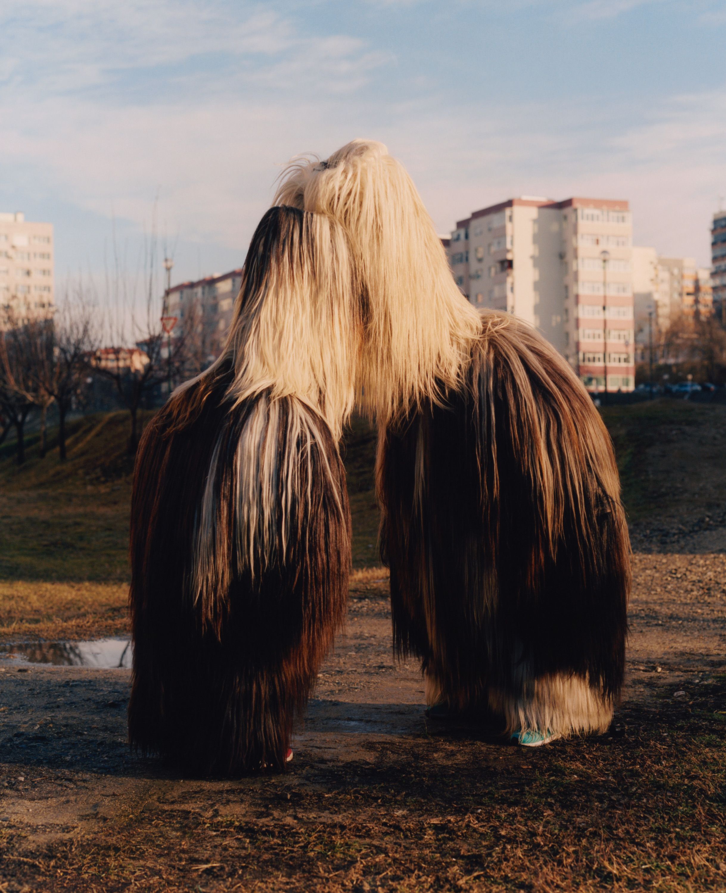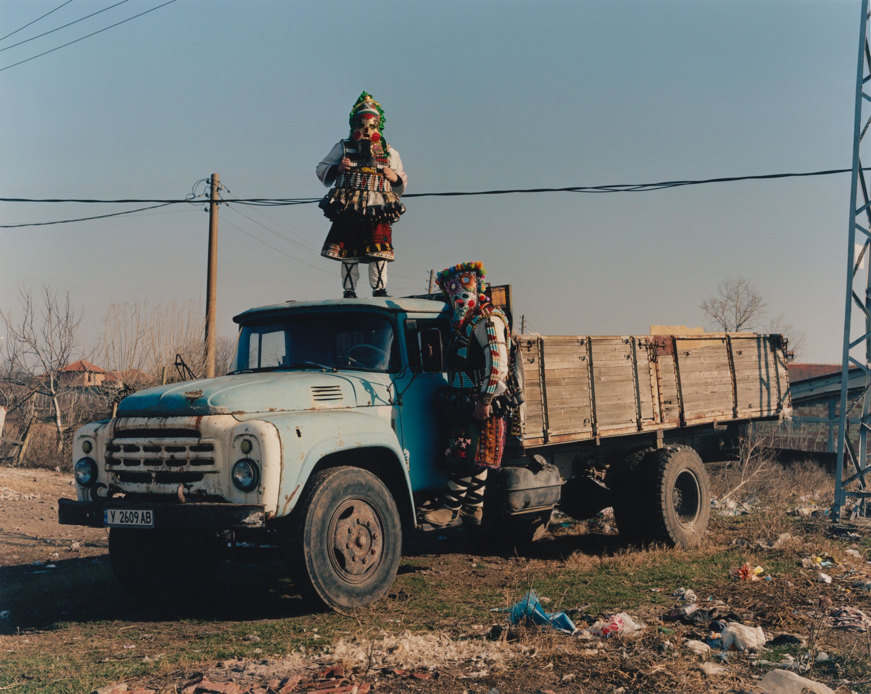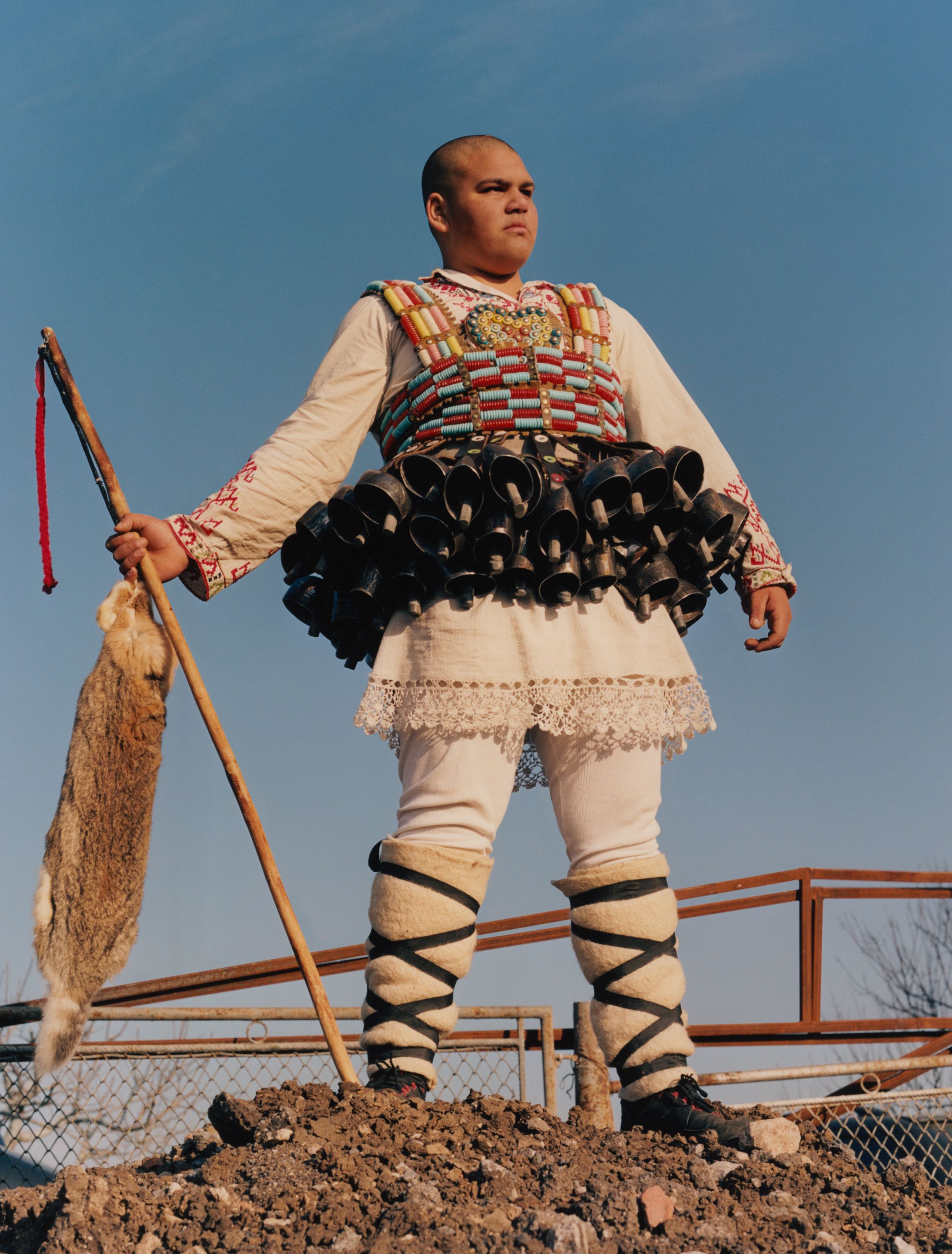 Enchanted by these elaborate costumes, photographer Theo Cottle travelled to Bulgaria, only to find that the main festival had been cancelled due to drought. Undaunted, he visited practitioners, called kukeri, at their homes, and found they were proud to share their unique tradition with him, getting their costumes out of storage and donning them for a series of intimate, joyous portraits.”