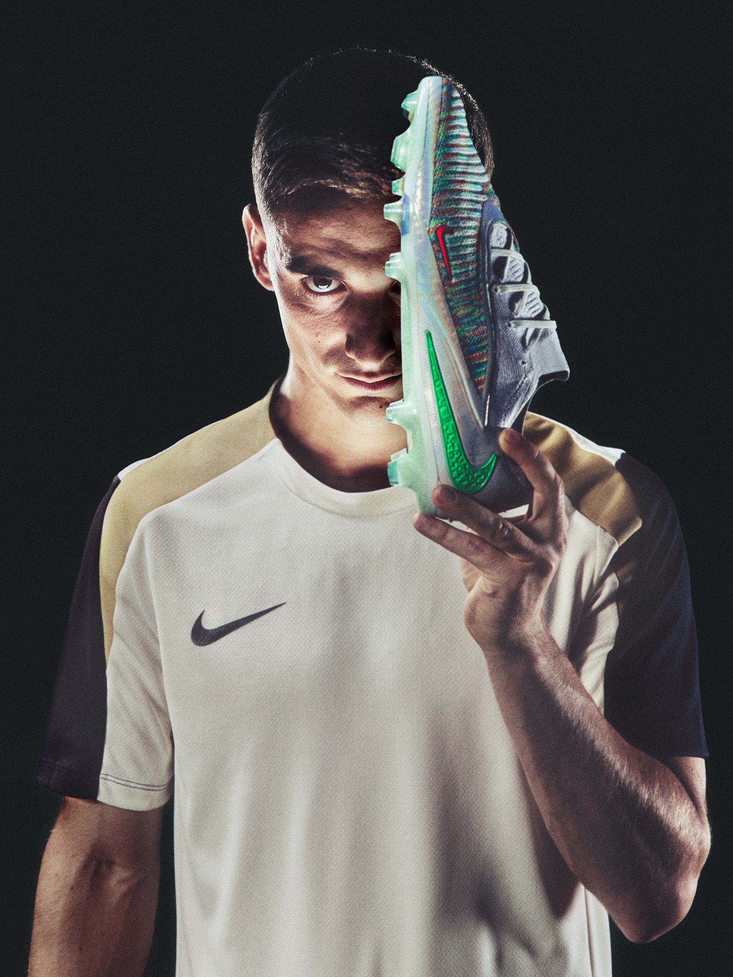 FC Barcelona and Spanish national team midfielder Gavi was photographed as part of NIKE Football’s global “Scary Good” Campaign. Portrait and performance images of him and La Masia graduates Kika Nazareth, Aicha Cámara and Tomás Marqués.